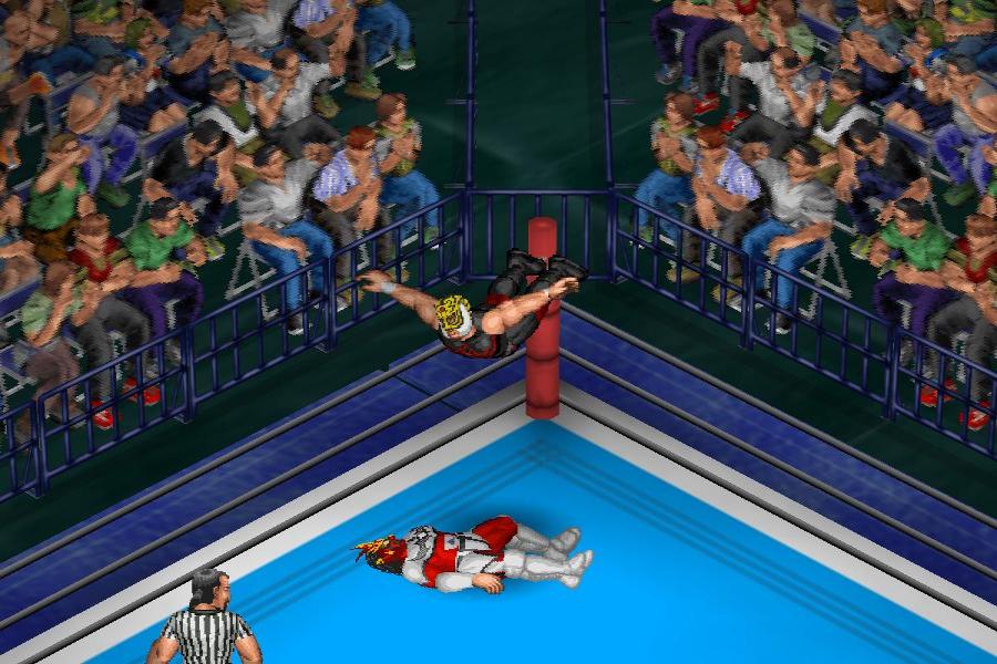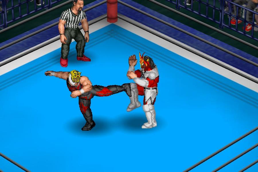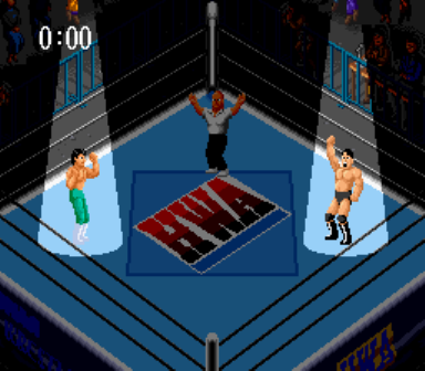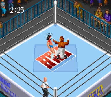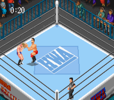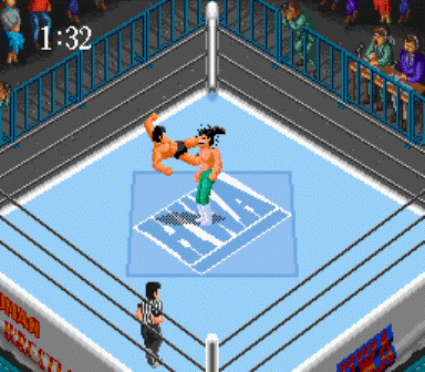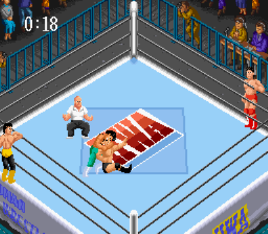 SFCで初めて出たプロレスゲーム。元祖のPCE版に比べて色鮮やかでSEも